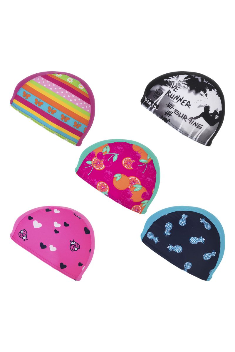 Vācu firmas FASHY bērnu peldcepure. Sastāvs: 80% poliesters, 20% elastāns. Krāsas: dažādas