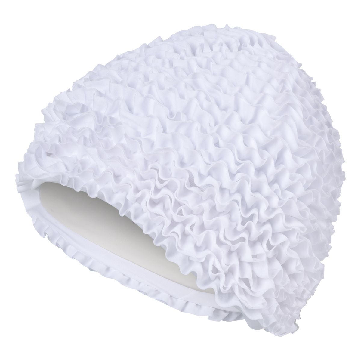 Vācu firmas FASHY sieviešu peldcepure ar volāniņiem .Sastāvs: 100% poliesters. Krāsas:balta
