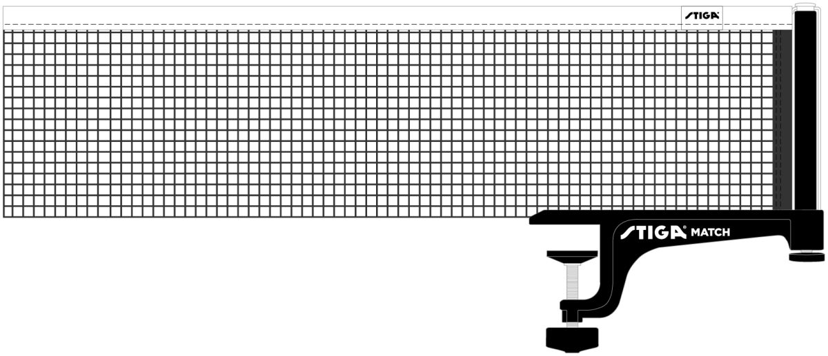 Zviedru firmas STIGA tīkla komplekts. Piemērots visiem galdiem. Tīkls tika speciāli izgatavots, lai varētu ātri un droši piestiprināt to pie galda. Stabila tērauda konstrukcija nodrošina augstāku kvalitāti. Piestiprinās ar skrūvēm. Materiāls: neilons.